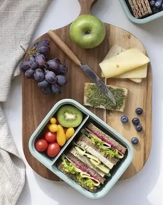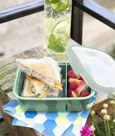 - Rectangular storage container with handy cutlery set (knife, fork and spoon)
