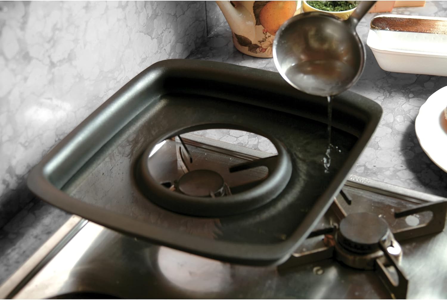 - Lightweight aluminium Grill for better heat distribution, non-stick with stone effect for healthy cooking with low fat content. Ideal for quick and healthy meals